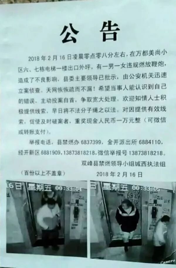 (3)能不能悬赏?这事儿真有意思,之前只听说过抓犯罪分子才要悬赏,也就是得违反刑法。现在这力度真是大了,放个鞭炮都有悬赏,还那么多,一万大洋啊。