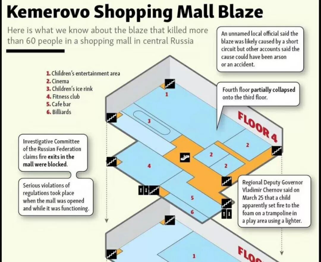 最新消息,有7人被捕。俄罗斯联邦总检察院将组织在全国开展为期一个月的商场消防检查。