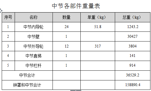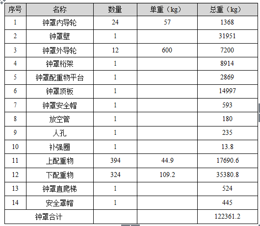 钟罩各部件重量表