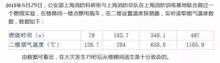 郑州的火灾引起广泛关注,从火灾之后上海消防研究所的实验数据可以看出:一楼起火,3分钟左右,二楼的温度就达到284摄氏度,6分钟左右,658摄氏度,8分钟左右,达到可怕的1105摄氏度,这还是二楼,一楼肯定温度更高。说真的,从7楼往下跑的时候,可能烟气温度还没这么高,但是越往下温度越高,有些人就是想捂着湿毛巾跑,把湿毛巾的作用太过夸大,也有些人就感觉憋一口气能跑出去,但是,真的不行啊兄弟,血的教训啊,有多少人死在充满烟气的楼梯间里!相反,郑州这起火灾中呆在家里的所有人(他们大多数不知道发生了火灾),毫发无伤。