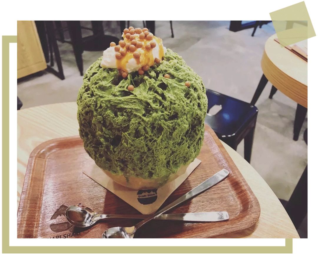 抹茶的清香苦涩中和了蛋糕的甜腻感