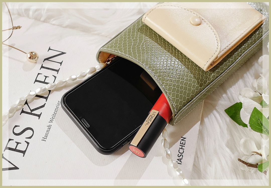 它的定位应该就只是手机包,容量很小但很可爱,前面还拼接了一个小小的卡包,可以给你塞零钱和卡之类的东西👇