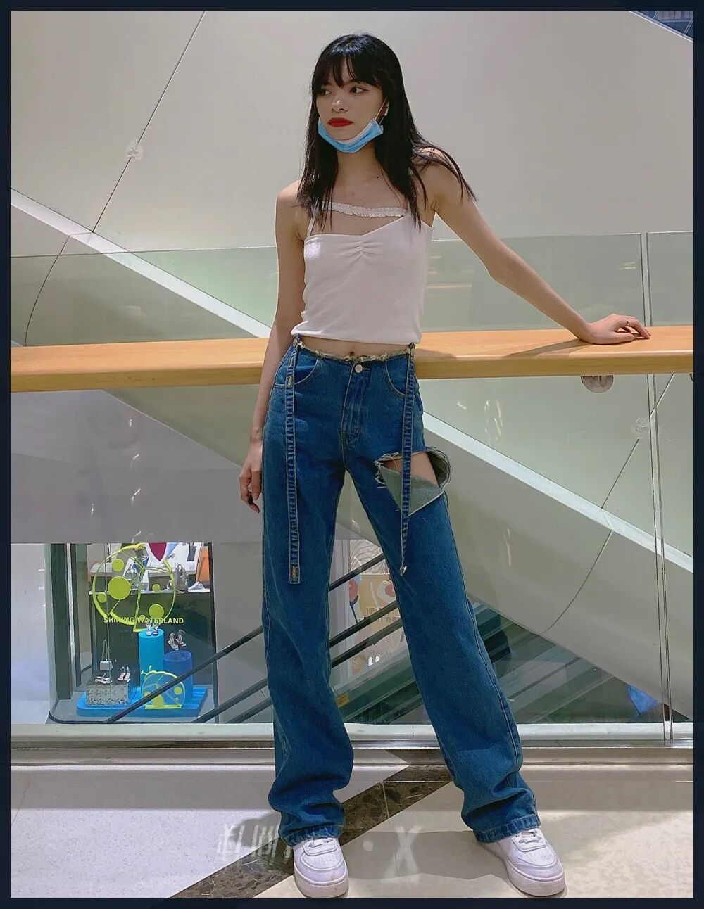 最主要的还是我觉得这种材质的牛仔裤特别硬挺,版型又特别宽松,穿短一点的上衣露出腰的话会显得腰特别细👇
