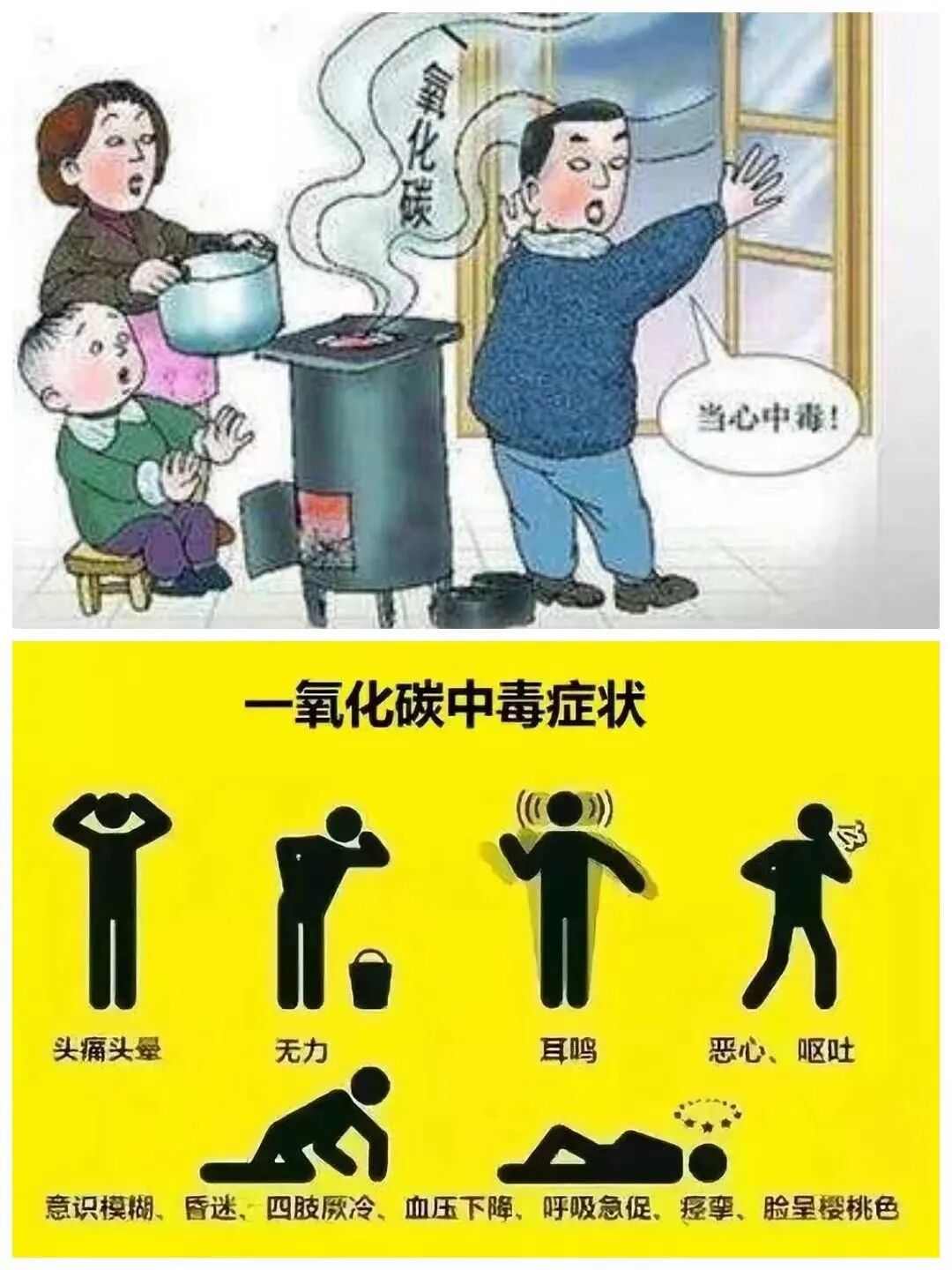1.在室内使用煤炉、煤球炉、炭火盆、煤气炉等取暖、做饭,如门窗紧闭、通风不良,可造成一氧化碳在室内积蓄,使人中毒。