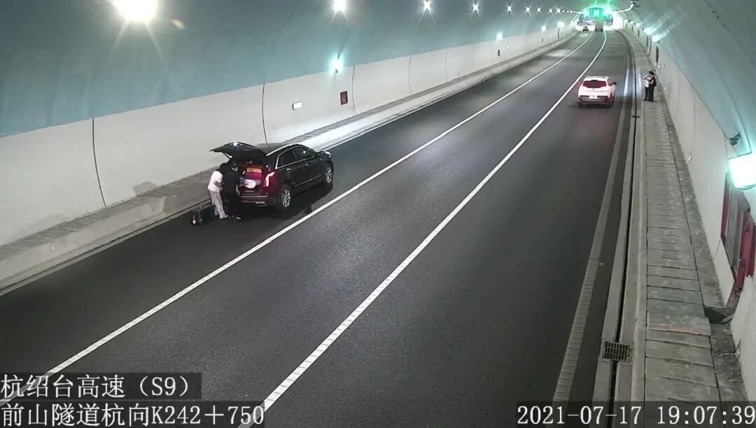 这起事故发生于今年7月17日。当天19时,在S9苏台高速台州段前山隧道内,发生一起两车轻微刮擦事故。