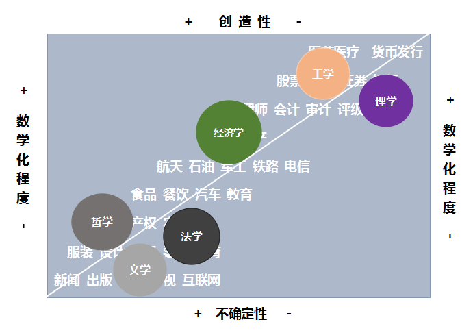 数学化程度越高,不确定性越低;数学化程度越低,不确定性越高。