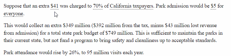 这是个好提案吗?如果没有上下文的话很难评估。主动的读者可能会想,「为什么是18 美元?如果税更多或更少呢?」 或者,「公园的门票是否可以提高?」如果我们是在纸上阅读,这些问题只能通过电话或大量的研究来回答。