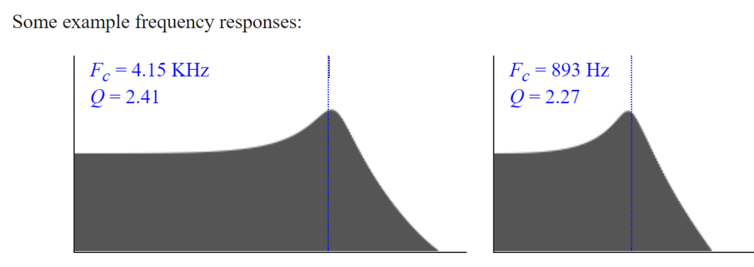 我们的作者很贴心地提供了几个例子,许多作者会认为这些方程已经足够了。但我们关心的是滤波器的动态行为(dynamic behavior),当我们改变参数 Fc 和 Q 时,响应是如何变化的,而两个静态例子给我们的启示很少。