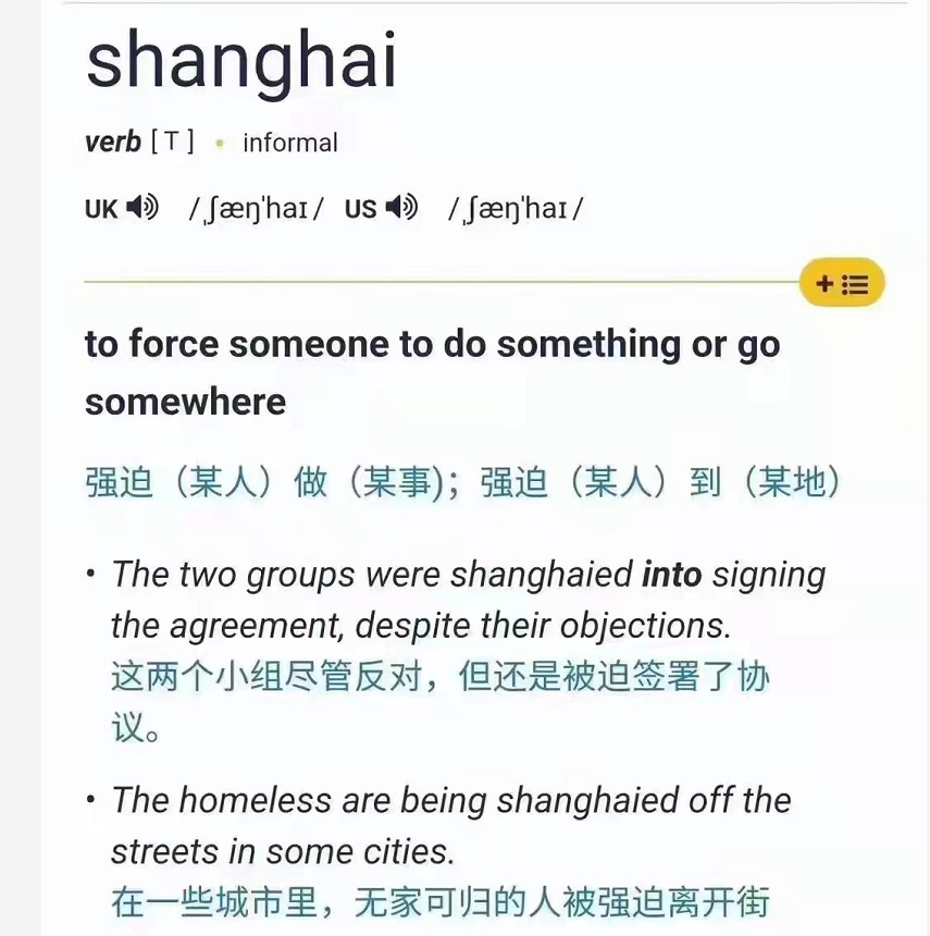 还有网友发现了这个,原来英语当中真的有shanghai这个单词。