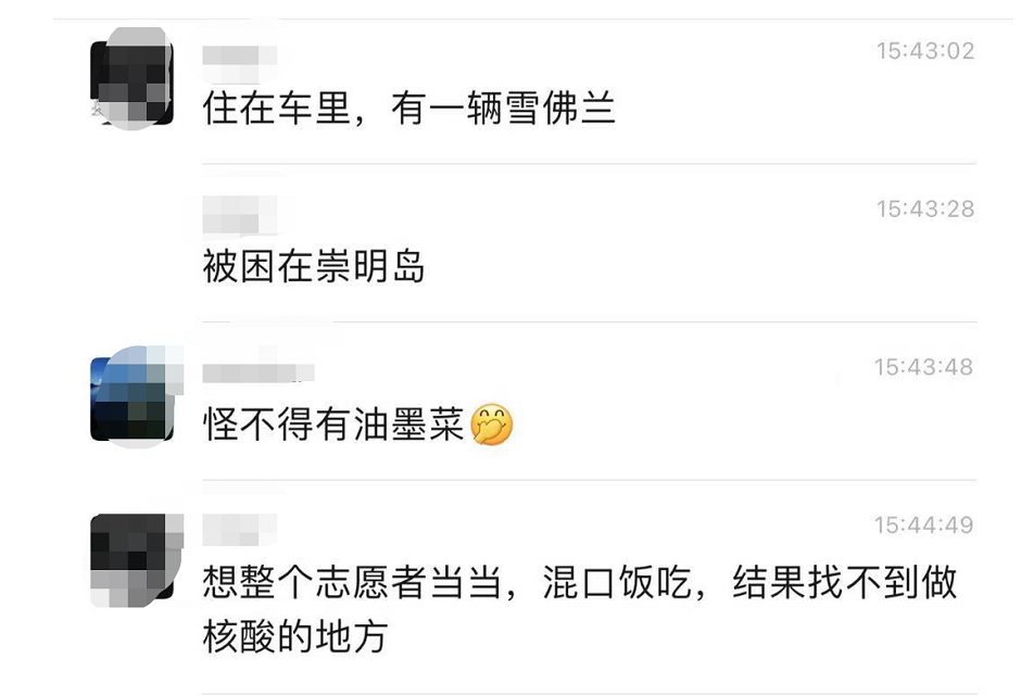 这个小哥因为没有核酸证明,所以只好困在崇明岛的乡间野外,哪儿也去不了。