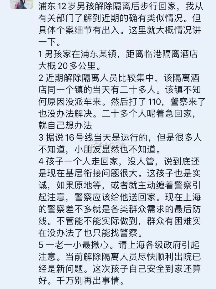 有人在选择离开,有人在选择找出真相。像12岁男孩步行回家的那个,现在最新回应也有了,小男孩没有徒步行走50公里,而是走了20公里左右。