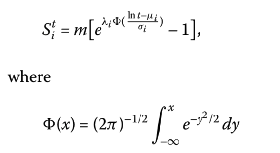 这三个公式中一共出现了三个参数,μi是书的即时性(immediacy),由达到销售顶峰的时间所决定的;σi 是下降速率(decay rate),衡量持久性;λi是相对的适合度(fitness),正比于η i。
