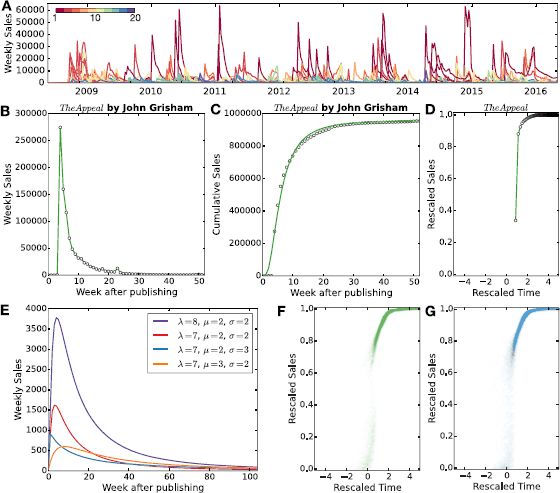 书籍的销量存在一个一般的模式(universal pattern),基于这个模式构建的统计模型能够很好的解释书籍销量随着时间的演变,从而实现很好的预测效果。