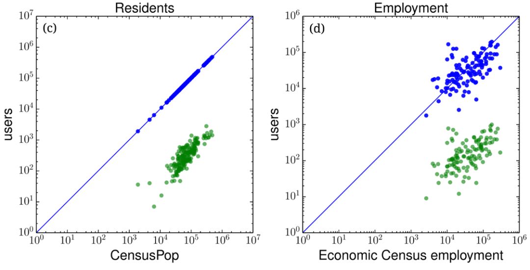 为了确保数据挖掘结果的有效性,李睿琪等人还使用了人口普查数据进行检验工作:用手机数据估计人口数量和普查数据人口数量进行对比验证,他们发现算法所估计的人口数量——无论是总人口数还是工作人口数,都和相应的普查人口数量比较接近,这表示他们工作具有很高的可信度。