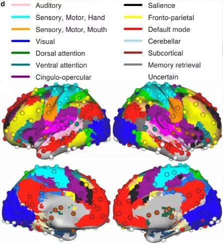图7:节点到社团的标准分配在大脑皮层的解剖学定位。