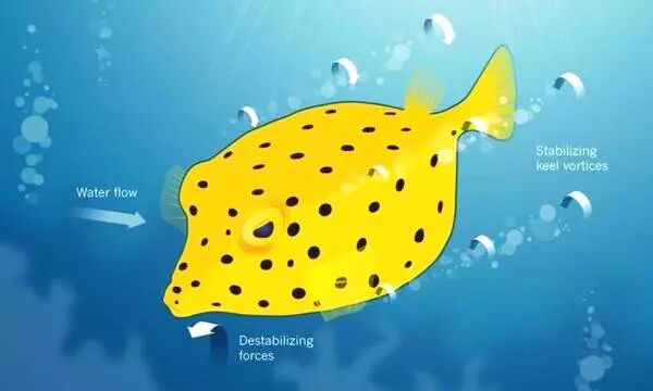 箱鲀的英文名叫Box fish,盒子鱼,因为它看着就像一个盒子。它的骨头是硬的,把身体撑在那块儿形成一个盒子。科学家研究指出,通过流体建模进行数值仿真、进行流体实验,箱鲀这样一种奇特的外观确实有助于它在复杂的水环境下更稳定。我们将来可以在里面装很多人为的一些传感器,或者执行操作的东西,那就可以更便于应用。因此我们认为它是最佳的仿生对象。