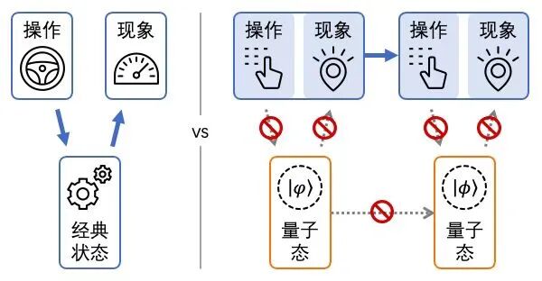 而那些无法拆解成这种形式的过程矩阵Wn-sep,就必然包含有不确定因果序列。在这种定义之下,不确定因果其实就是过程矩阵的因果不可分离性(causal nonseparability),通过定义CNS:=-Tr(SW)就可以直接量化的度量因果的不确定程度。2016年的那次实验,正是在一个由两台马赫-曾德尔干涉仪构成的Quantum Switch中实际测得了CNS=0.202±0.029从而明确无疑地证实了不确定因果的存在。关于具体的数学构建及实验细节,感兴趣的读者可以查阅相关论文[1],此处就不展开了。此刻需要回头补充说明一下,为什么在讨论量子效应相关的因果结构时,因果箭头所连接的对象不能是量子态本身。简单粗暴的一句话解释就是:为了保留因果的定域性,只能放弃量子态的实在性,因此也就只能将量子态本身排除在因果链条之外。我们的直觉比较适应图中左侧所体现的因果逻辑,但在涉及量子态的因果讨论中,必须时刻警惕避免,只能采用右侧这种思考模式。否则不仅会把自己绕晕,而且还很可能得出各种自相矛盾的结论。其实,随着违背贝尔不等式的量子纠缠关系被确认,定域性和实在性就已然成了一对水火不容的冤家对头。在讨论量子效应的时候,二者必须舍弃其一。上面图中蓝色框中都是满足实在性的对象,可以放心的加入因果链条之中。而橙色框中的量子态被排除在外,就是因为定域性与实在性之间的互斥关系。当然,就目前的理论进展来说,判定量子态的非实在性暂时还是一个主观选择,不能算是完全确凿的客观定论。但是,如果我们希望在不充分了解全宇宙过去和未来所有细节的前提下,仍能够在小小的地球上的某个四处漏风的实验室里鼓捣出一些可信赖的因果关系的话,那么保留定域性而放弃实在性应该是一个比较明智的选择。尽管“测量操作导致量子态塌缩”这种说法随处可见,但我们不应该把这句话理解成测量操作与量子态之间的因果联系,除非我们想把“因果”这个概念扩大到整个宇宙的不同状态之间的联系。相信在绝大多数情况下,这并不是我们使用“因果”这个词时所指的含义。估计有很多读者此刻会憋着一肚子不服气。任何操作和可观测现象的前提,就是得先有一个量子态存在,如果禁止向这个量子态回溯因果联系,那我们的因果链条岂不是根本无法拥有一个起点?物理学家解决这个问题的方法颇为机智:我们可以用“量子态的制备”这个操作,作为因果链条的起点。这个操作本身具有实在性,且伴随着可观察现象,与其他后续操作或现象之间可以建立因果联系。最后需要说明的一点是,即使我们抛弃量子态的实在性,保留了定域性,也无法保证事情都会回到经典图像的定域因果框架下。本文中介绍的Quantum Switch中的不确定因果关系,就是在放弃量子态实在性之后仍然超出经典图像的例子。总之,所有来自经典图像的研究结论,在外推到量子世界时,都必须谨慎小心仔细审查。[1] Rubino et al., Sci. Adv. 2017;3:e1602589“Experimental verification of an indefinite causal order”. DOI: 10.1126/sciadv.1602589
