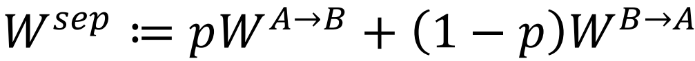 对比两者的数学形式就能看出,其中的数学技巧几乎一模一样,只是判定算符所作用的对象,其物理意义完全不同。前者中的ρ是刻画量子态的密度矩阵,而后者中的W则是描述Quantum Switch中各操作承启结构的过程矩阵。如果过程矩阵中A→B和B→A两种因果序列出现的概率非此即彼,又互无交叠,我们就定义其为因果可分离。![]()