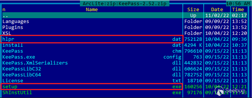 如上面的屏幕截图所示,KeePass-2.52.zip文件中包含两个恶意文件: