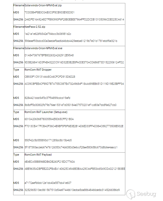 RomCom RAT IoC