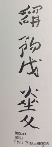 这种视像改动甚至发展为“异体字”、造字。在傅山的集大成之作,亦是杂书手卷的《啬庐妙翰》中,“于”字就有三个写法(白谦慎,2005:181),见图4。同时,这个手卷时还大量采用了汉简、钟鼎文字,极难辨别。
