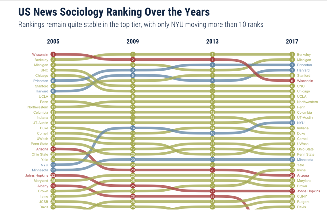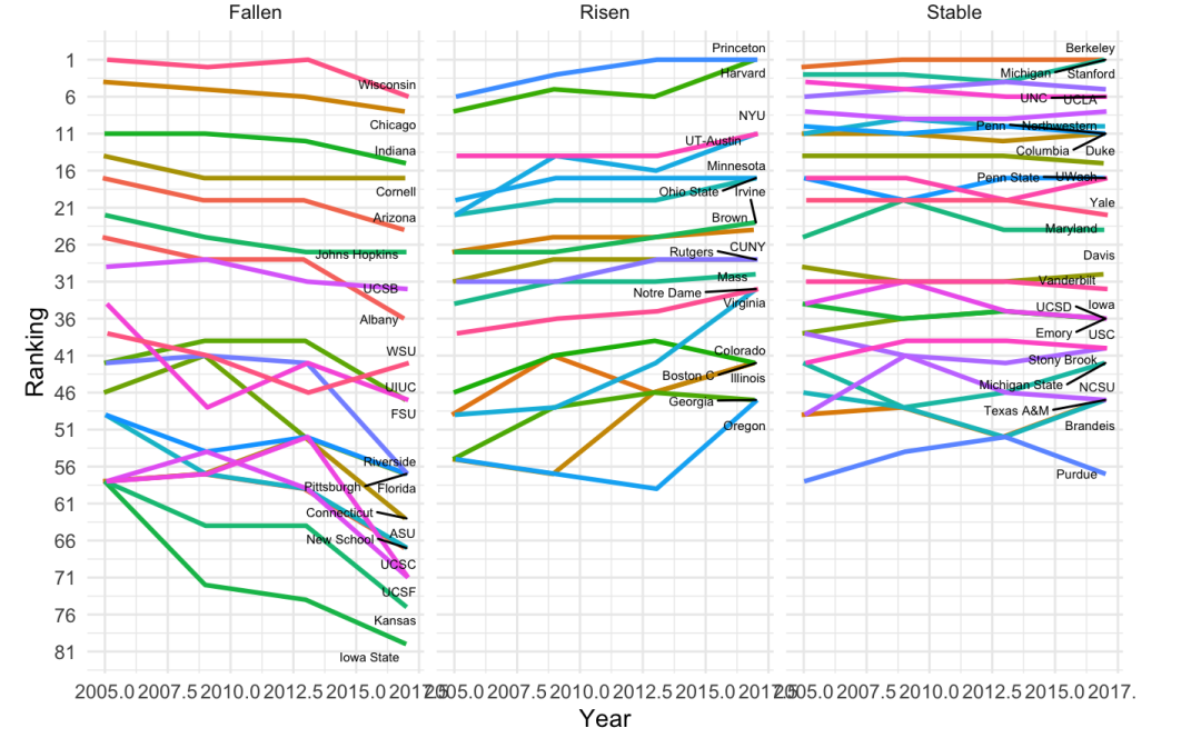 图2:美国大学社会学排名top80的升降分组(2005-2017)