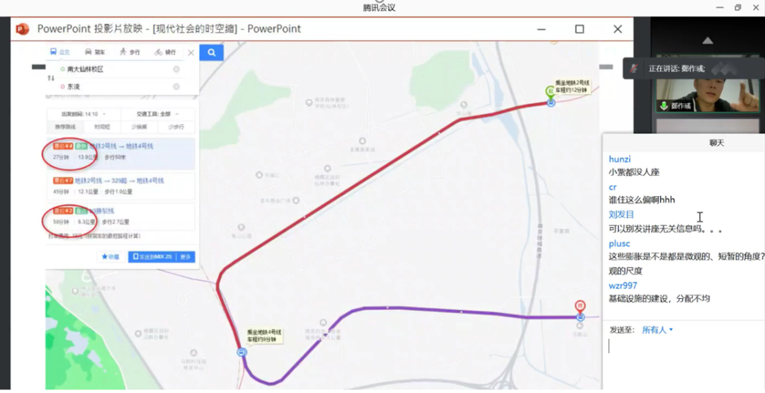 接着,郑老师介绍马克思主义学者大卫·哈维的“时空压缩”理论——“我们的生活步伐加速了,而且也克服了空间上的障碍”,进一步以提出了几点挑战与发展: