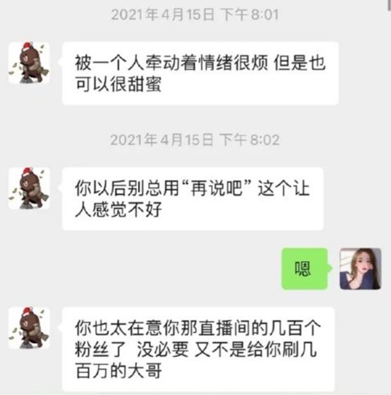 最近爆出来,他追求一位网红女性孙一宁,但人家爱搭不理。结果呢?他和这位女性对话的风格混乱,形象大变,在亲密表达之中又夹杂着“厌女症”。