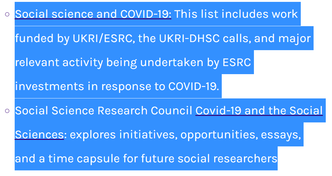 如第一个项目是:Measuring emotional responses to COVID-19(关于新冠疫情期间的情绪反应的测量),是伦敦大学学院Kleinberg, Bennett主持的关于欧洲和英国的心理学、公共卫生和计算社会科学研究。
