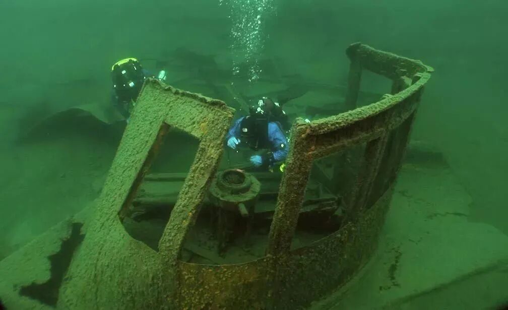 雷霆湾国家水下保护区是五大湖区沉船最集中的一块,因此又被称作Shipwreck Alley"沉船小巷"。这片湖底躺着数百艘大大小小的失事船只,有些木质船体因为泡在水底时间太长,已经完全被青苔覆盖,成为鱼群的天堂;有些钢铁船体经过打捞和拆解只剩残骸或者半截船身,探险潜水爱好者可以在这些船只的钢铁结构内自如穿梭,体验一番美人鱼寻宝的乐趣。