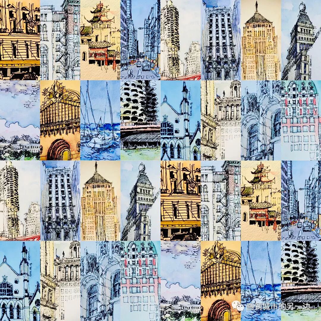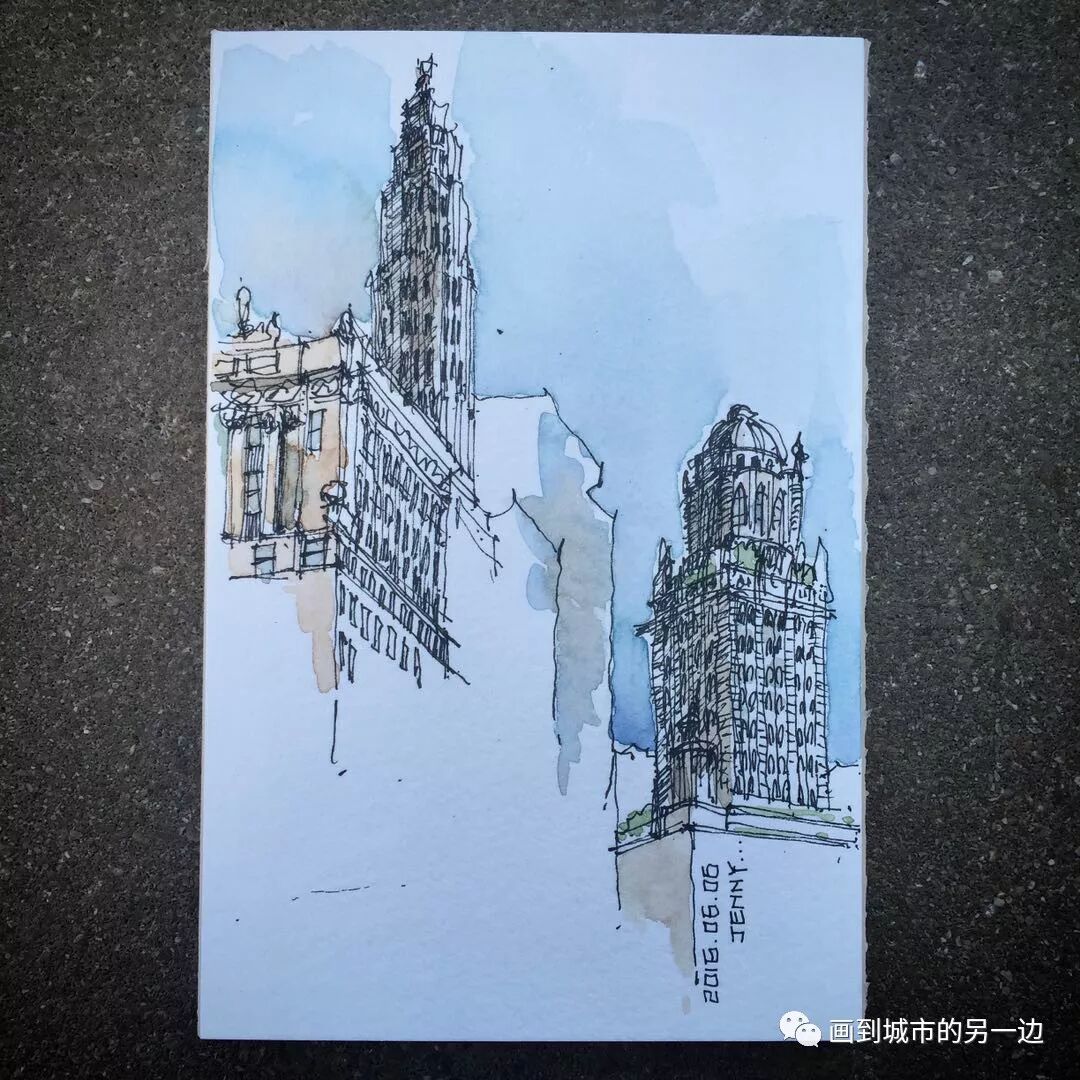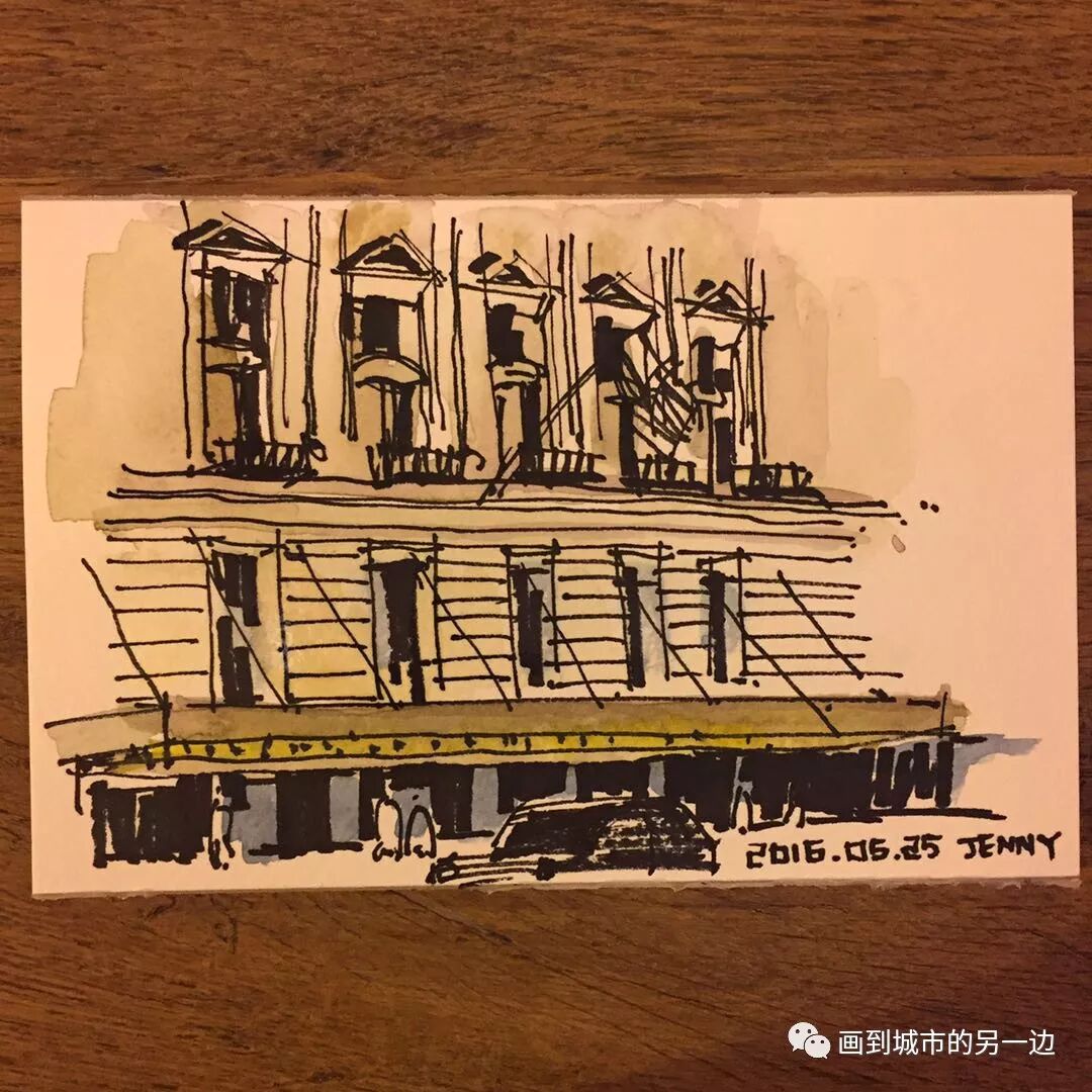 下班后在城市里走走,看到一个地方心弦动一下,就简简单单停下来,用线和色凝固在纸上。