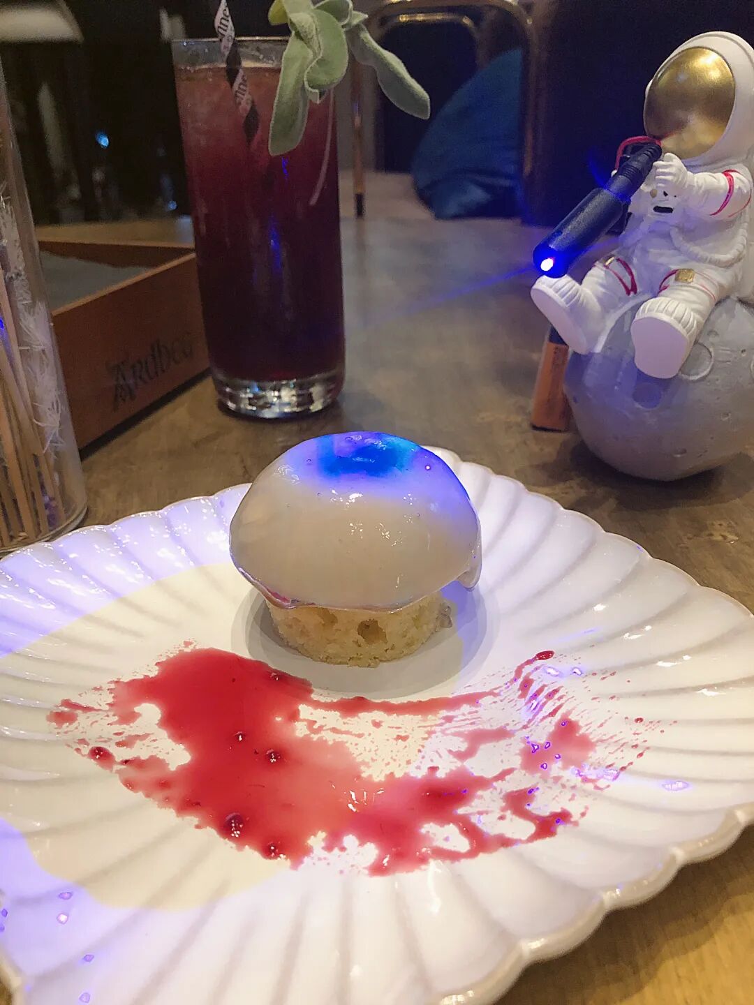它家的所有甜品都围绕太空的主题命名,分分钟呼应着天花板的景色~