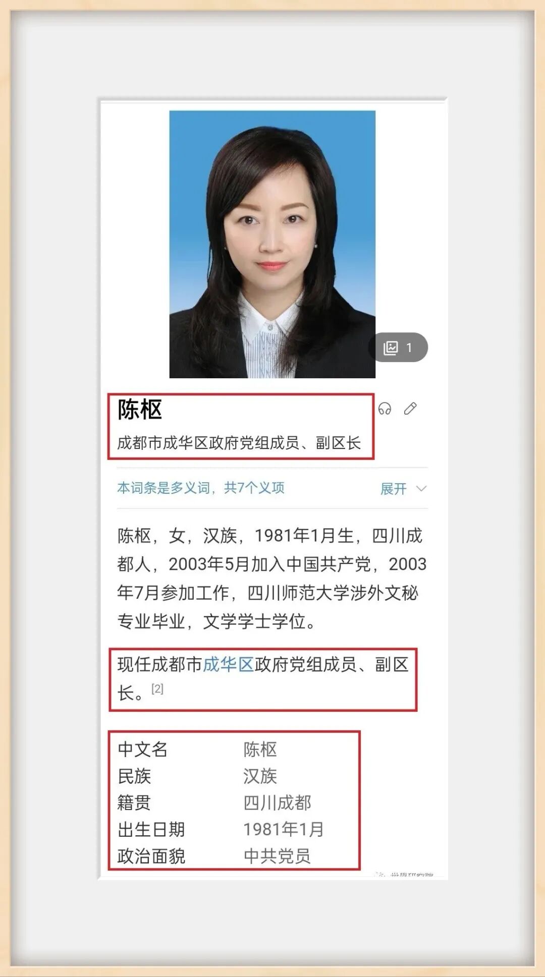 成都市纪委监委的回应,算上标点符号也才短短30多个字。字不多,信息量却不小。有了官方的回应,“官方通报网传干部发不雅信息”的话题立马冲上了微博热搜,顺带把“成华区”的话题也给带火了。经过万能的网友顺藤摸瓜,两位男女副区长的身份已经逐渐浮出水面。女方,疑似成都市成华区副区长陈枢,涉外文秘专业毕业,文学学士。男方,疑似陈枢副区长的同僚:成都市成华区委副书记、常务副区长雷鸣,计算机及应用专业毕业,工学学士。公开资料显示,雷鸣今年50周岁,陈枢41周岁。如果两人都是单身,不要说互发“不雅”信息,即便是带着追求性刺激和获得性满足感的目的自愿发生不雅行为,旁人也没啥可说的。