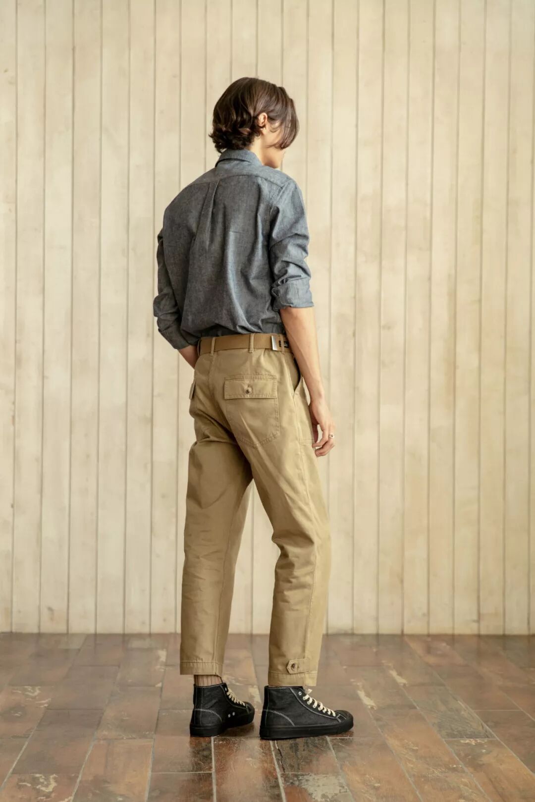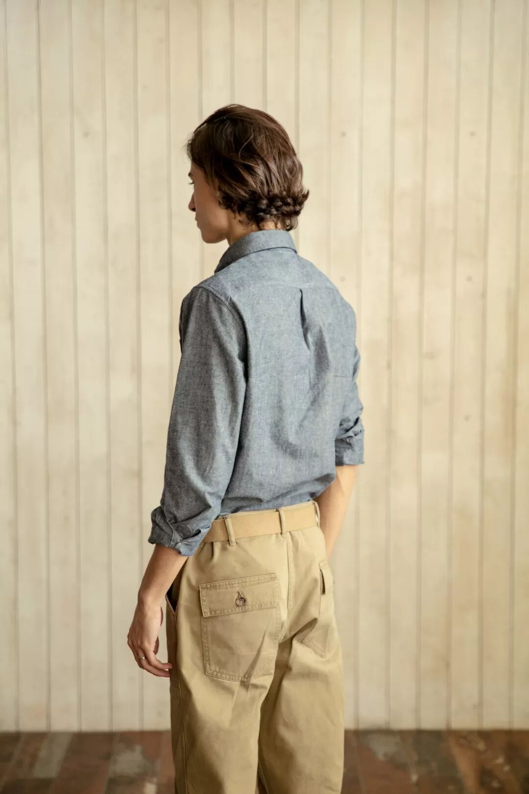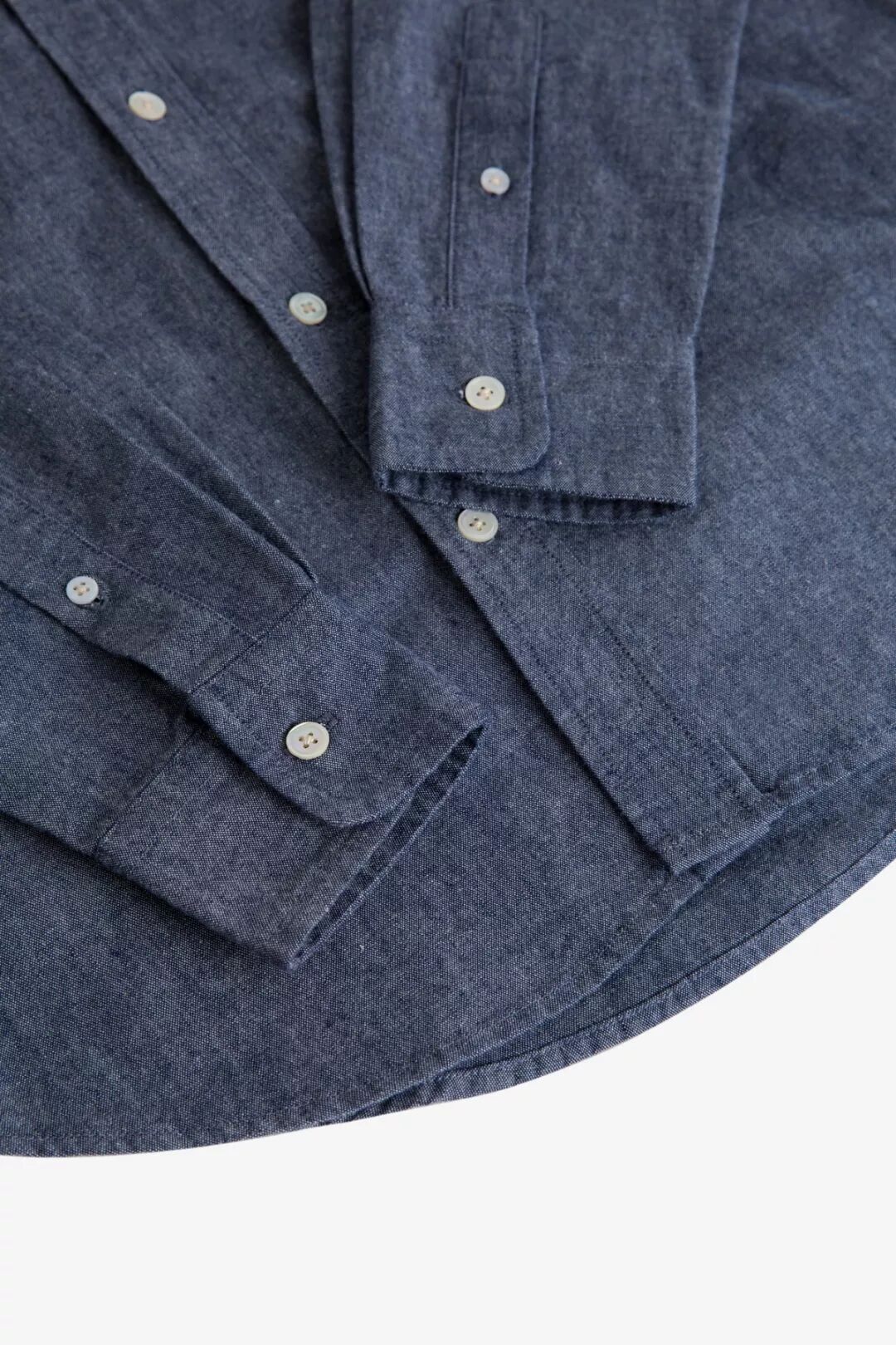 衬衫纽扣选用的是古老的贝壳扣,经过选贝、冲剪、磨光、抠槽、打孔、车面、磨光漂白七道工序制作而成,质感高雅、色泽光亮,每一粒都有不同的纹理与光感,精致耐看,不易磨损。袖口采用两颗纽扣固定,以适合大部分手腕粗细的松紧度剪裁,无论是扎紧袖口还是卷起袖子都很舒适,没有紧绷的感觉。衬衫胸前的口袋设计有假袋盖,易于放置小件物品,视觉上简约大方。改良后的牛津纺衬衫面料相对较薄,又不失质感,款式介于正式与完全休闲之间,没有正装的刻意与拘束,也不至于像T恤太过随性,可以内穿,也可以外搭,适合不同季节的穿着和多种穿搭风格。衬衫尺码标使用了上世纪50-60年代的军事数字记码方式,复古别致,男女通用。尺码