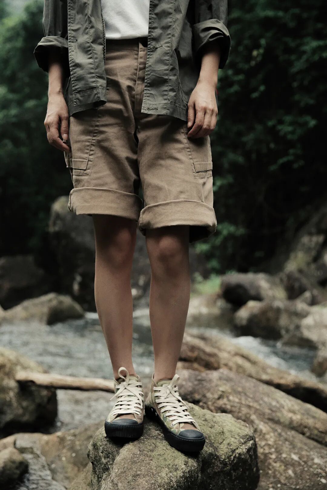 新品|法式斜边插袋工装风衬衫式夹克 军绿色