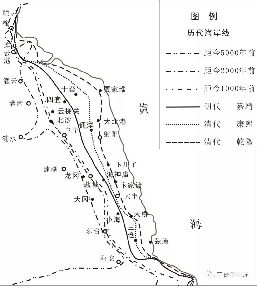 [1]参见中国科学院《中国自然地理》编辑委员会编著《中国自然地理》之《历史自然地理》分册(北京。科学出版社,1982)第五章第三节《苏北海岸的历史变迁》,页232~234。又邹逸麟主编《黄淮海平原历史地理》(合肥,安徽教育出版社,1997)第六章第二节《苏北海岸的变迁》,页192~197。