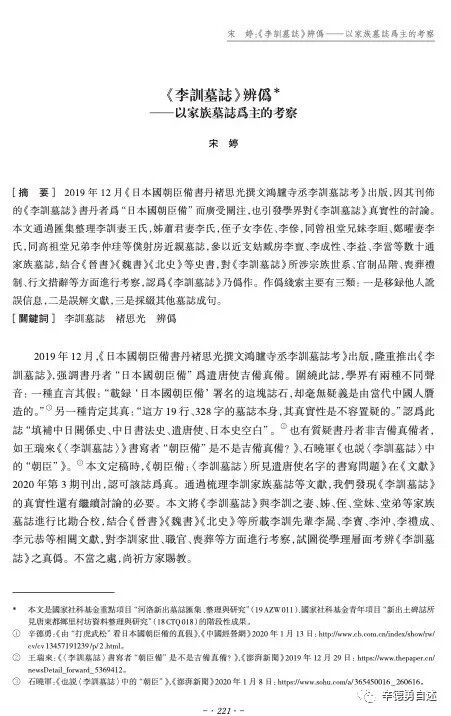 這幾天,好幾位朋友都向我推薦華西師範大學副教授宋婷女士《〈李訓墓志〉辨僞——以家族誌爲主的考察一文》。