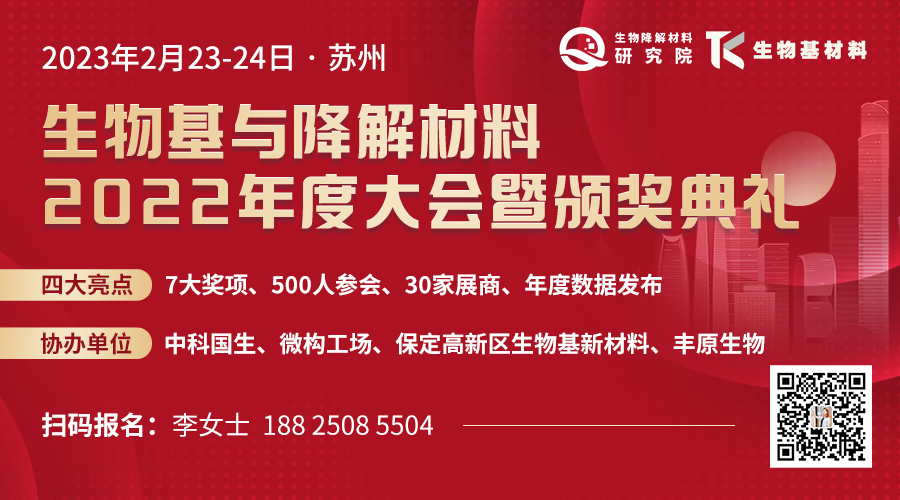 2023年2月23-24日,《生物基与降解材料2022年度大会暨颁奖典礼》将在苏州举办,欢迎您前来参与,可扫上方二维码咨询。
