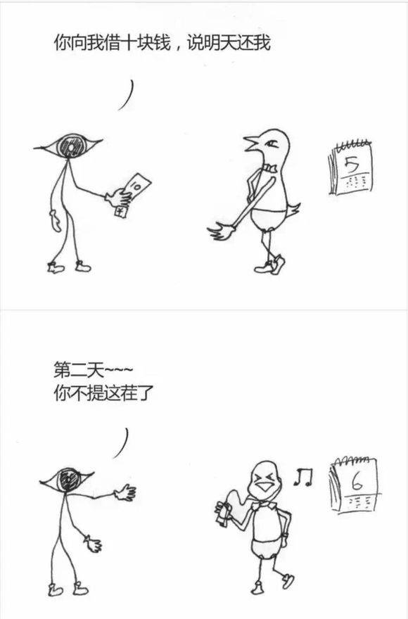 通常,借给人家钱的还记得,而借钱的人却早忘了。借给人家钱的,不好意思张口讨,每每见面弄的忐忑不安,欲言又止,而借钱的人却无比坦然。
