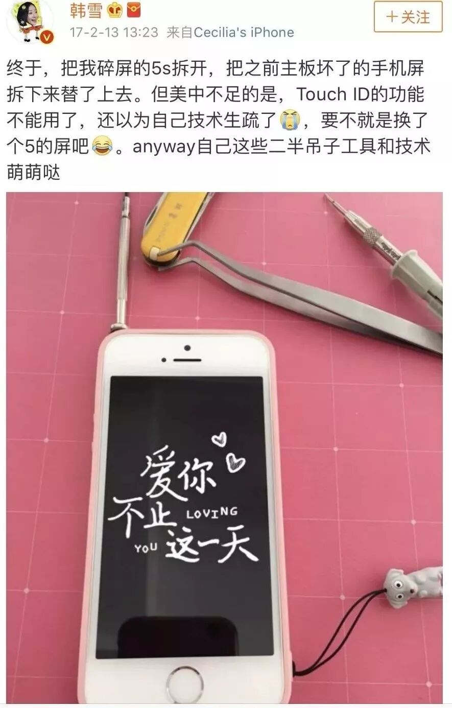 有网友不相信她的修理技术,于是她开了直播,全程用一把瑞士军刀修手机,看来以后不拍戏了光靠这个修理技术也是能发家致富的。