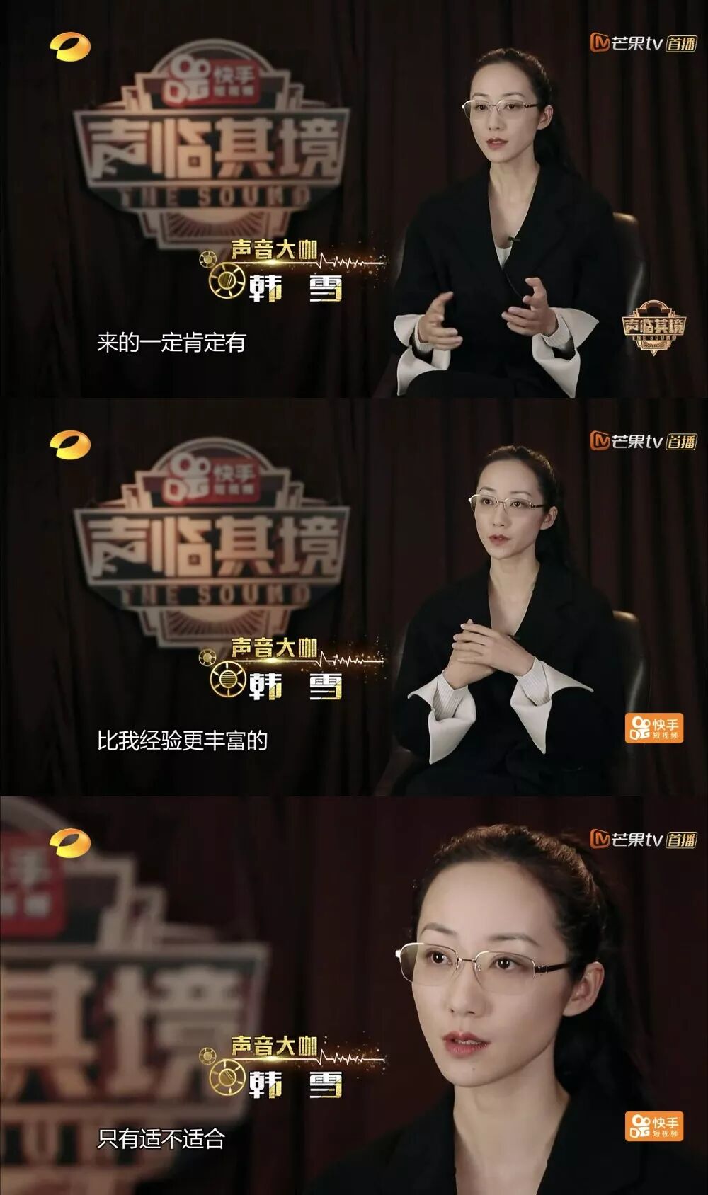 在综艺《声临其境》中,韩雪赤脚上阵俏皮发声,演绎经典作品。英文发音分饰两角,配音《海绵宝宝》,前一秒哭腔还没结束,下一秒就“精分”出温柔妈妈。