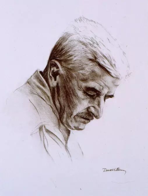 你必须背诵真诚、正确。我们还小的时候,可以每天背同一篇,直到背得很好,一个又一个早晨,直到稍稍长大一点,某个早上(这次你已经非常流利,快速背出都不用去听自己的声音,因为你五到十分钟之前已经处在火腿、牛排、炸鸡、玉米碴子、红薯、三两种刚出炉的面包里了),你会突然发现他看着你——非常忧郁,非常和蔼优雅,尽管这样他也没有显得十分严厉只是不可动摇——第二天早上,你又背一篇新的诗篇。总之,直到你发现童年已经过去,你长大了进入了社会。