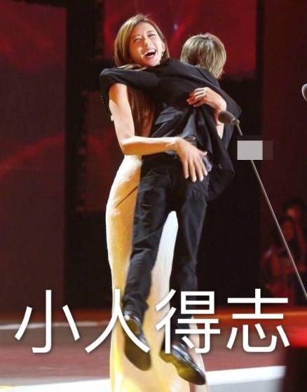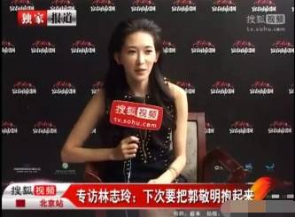 活动上身穿高叉长裙的林志玲在台上一把抱起了郭敬明,