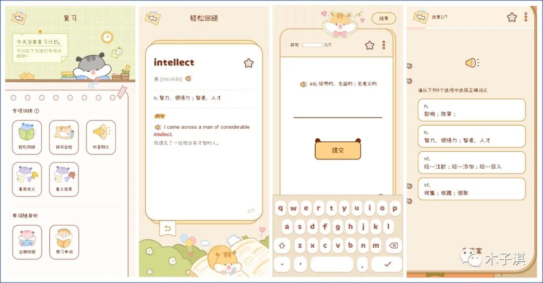 它免费好用,有趣创意,画风特别可爱,每个界面都是清新唯美;它主要的特点是以学习和养成为主题的趣味背单词软件,让你背单词变得不再枯燥,每次完成单词记忆,可以召唤出仓鼠宠物。