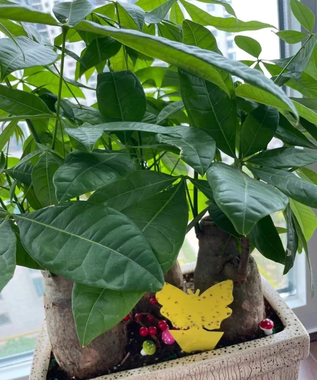 但是千万不要买那种大板子,虫子是粘死了,人也得密集恐惧症了。现在有很多卡通形状的粘板,直接插在土里就能除虫了。