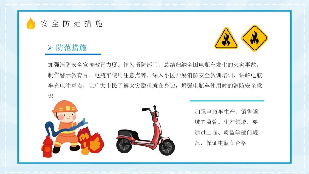 一辆电动车的寿命一般为3到4年,如果超期使用,电气线路和电瓶会出现老化故障等情况,如果再加装音响、照明或者加装电瓶,就很容易造成线路过负荷,引发火灾。在日常使用中,加强对电动车的线路、电器元件等方面的检查,防止接触不良引起打火、发热,避免线路老化、磨损而造成漏电、接触不良或短路等故障发生。