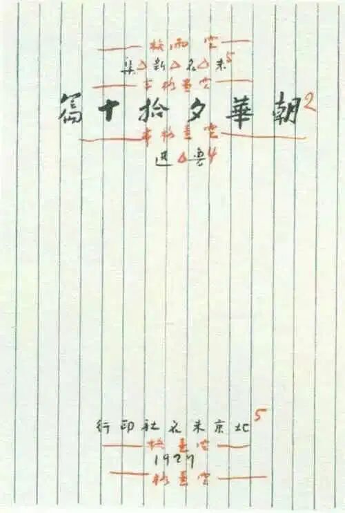 然而,鲁迅的挚友许寿裳先生在鲁迅逝世后所做的《鲁迅先生年谱》里,却写着鲁迅1927年“十月抵上海。八日,移寓景云里二十三号,与番禺许广平女士同居。同月《野草》印成。”书上标7月“印行”,“年谱”又说10月“印成”,这是怎么回事?许寿裳难道连“七月”二字都没看到吗?情形也许是这样的——即如今天也会这样——,版权页上的时间是出版时间,真正“印成”书,极有可能略晚一段时间,如两三个月,当然也有早一点就让作者拿到手的情形。也就是说,二者虽不一致,却可能都符合实情。而且,查鲁迅日记,最早有赠出《野草》的记录,还就是在10月。见14日记有“寄立峨《野草》一本,《语丝》三本”。鲁迅携许广平这个月的3日刚刚抵达上海,“午后”刚到,即“下午同广平往北新书局访李小峰”,且“夜过北新店取书及期刊等数种”。速访是否是为了《野草》?取的书是否包括刚刚见到的样书《野草》?