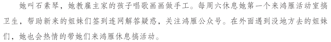 梦雨的彩画漫画群像,配上文字,记录多位家政女工的风采。