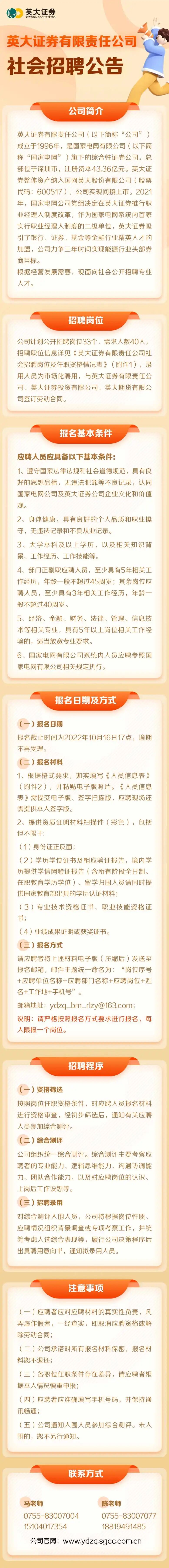 附件1. 《英大证券有限责任公司社会招聘岗位及任职资格情况表》* 投递方式:点击下方阅读原文查看详情