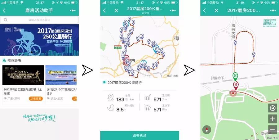 “磨房活动助手”是我们为了提升活动参与体验,而开发的一款聚焦磨房大型户外活动的全新小程序。对于活动参与者而言,熟悉线路是顺利完成活动的核心需求之一,因此我们会将最新的磨房官方活动轨迹路书及其他资讯,及时更新在“磨房活动助手”小程序中。